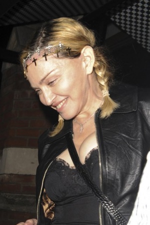 Днями папараці зняли Мадонну і Рокко на виході з нічного клубу в Лондоні , де мати і син провели веселий вечір. Судячи по знімках , в обох був чудовий настрій . Прихильники відзначили досить дивний аксесуар, вінок з хрестів, який прикрашав голову співачки.