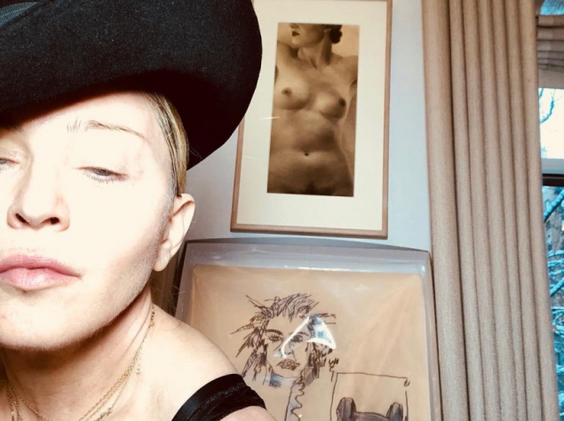 До слова, коментували не тільки обличчя співачки без косметики, але і фон, який вона вибрала для Селфі. Так, в кадр потрапила картина із зображенням абсолютно голої жінки, а ось сама Мадонни на знімку розметались з одного краю. Загалом, все в стилі артистки!