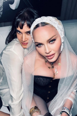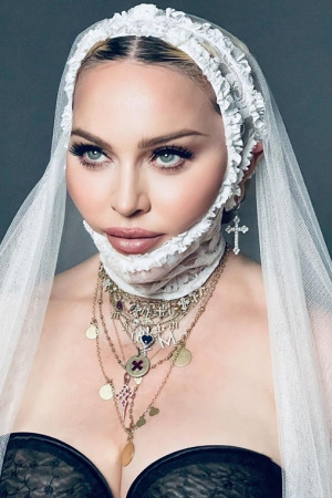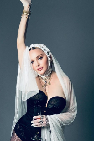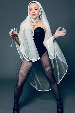 Цього року зірка не відвідала Бал Інституту костюма Met Gala 2021, однак влаштувала маскарад вдома. Так, 63-річна знаменитість наділа чорний корсет, колготки в сіточку і доповнила свій образ білою фатою в стилі черниці.
