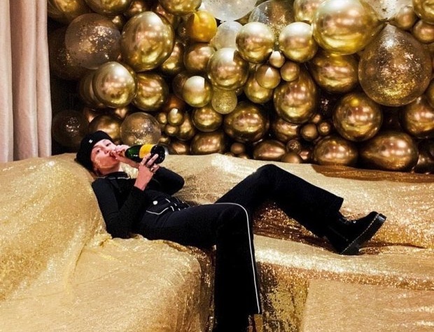 На знімках співачка позує або з пляшкою шампанського в руках, або показує середні пальці у камеру.