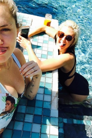 У неділю Майлі опублікувала знімок, на якому вона зображена біля басейну з подружкою. На безіменному пальчику знаменитості було кільце, яке багатьом здалося обручки. В силу чуток про майбутнє весілля і скритності пари, все може бути. Але представник Сайрус і Хемсворта мовчить, а самі вони також німі, немов у рот води понабирали.