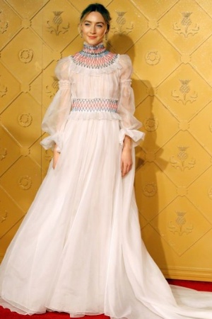 Її колега Сірша Ронан також вибрала для захід повністю закрита, але не менш красива біла сукня з об'ємними прозорими рукавами від Carolina Herrera. Її ніжний образ доповнював ледве помітний макіяж і сережки з каменями.