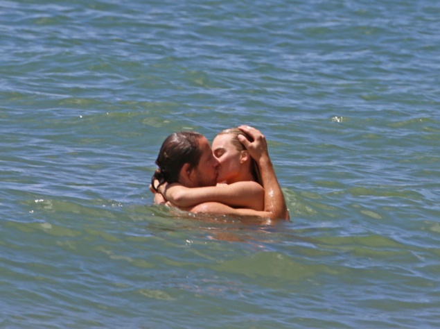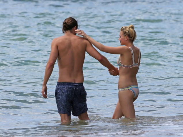 Том і Марго злилися в поцілунку, пустуючи у водах Тихого океану. Пізніше парочка вирушила приймати сонячні ванни.
