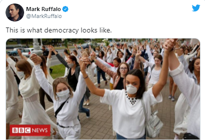 Відомий американський актор, продюсер та активіст Марк Руффало не залишився осторонь протестів у Білорусі. Він підтримав мітингувальників та їх боротьбу за демократію.