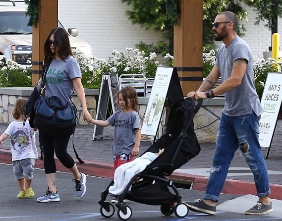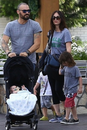 Меган Фокс і Брайан Остін Грін вирушили на прогулянку з їхніми синами - 3-місячним Джорні, 2-річним Бодхі і 4-річним Ноа. Родину сфотографували у графстві Вентура.