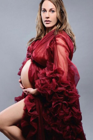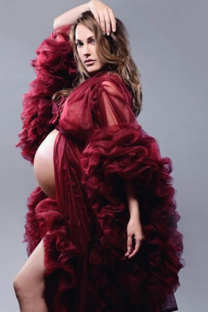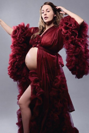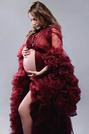 На знімках Мер'єм Узерлі постала в бордовому платті з рюшами, оголивши вже досить великий живіт.