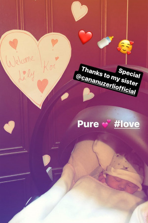 На фото можна чітко розгледіти обличчя крихітки. Дівчинка в кумедній шапці із зірочками спала, дбайливо вкрита білою ковдрою. Мер'єм зазначила на знімку ім'я донечки — Лілі Коі, та зізналася, що фото було зроблений її сестрою — співачкою Джанан Мер'єм Узерлі, яка вже встигла познайомитися з племінницею.