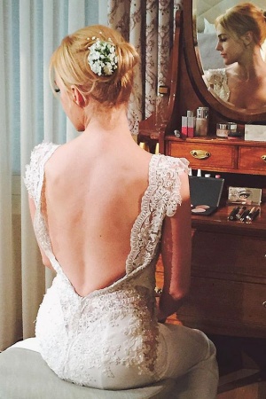 Молода мама, в свою чергу, не втомлюється інтригувати передплатників цікавими фотографіями. Приміром, нещодавно вона опублікувала фото, на якому постала у весільній сукні з глибоким вирізом на спині.
