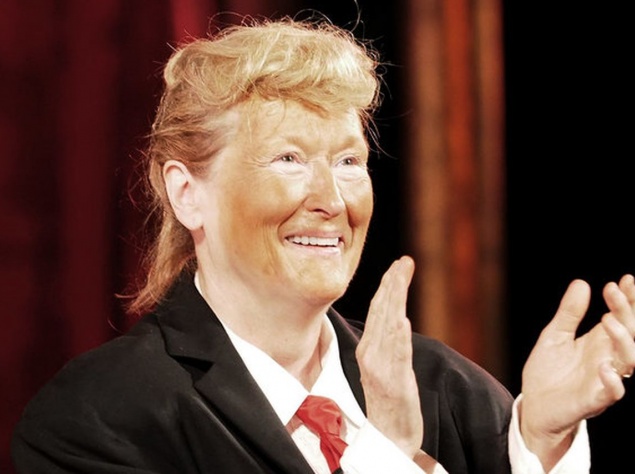 Одна з найбільших актрис сучасності Меріл Стріп потішила публіку Нью-Йорку на щорічному гала-виставі публічного театру "Шекспір а парку", на якому вона з'явилася в образі Дональда Трампа - мільйонера і кандидата в президенти США.