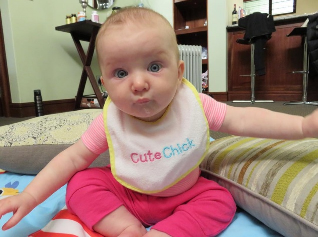На знімку Дашиель зображена в рожевих штанцях і кофтині, а також дівчинка забавно дивиться в камеру.