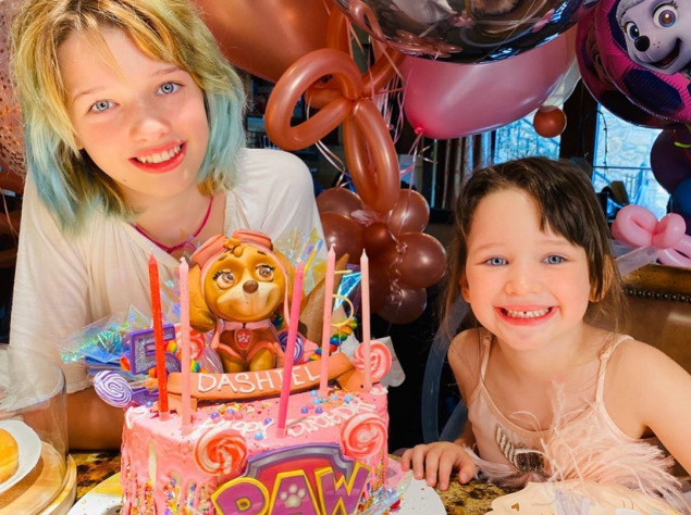 "З днем народження, моя маленька, солоденька лялечко! Дешіел сьогодні 5 років і у нас карантинна вечірка! Я не можу повірити, що вона вже така доросла, але запевняю вас, вона така ж мила і чудова як і того дня, коли народилася. Вона така добра і за її п'ять років вона ніколи не вередувала. Якщо я щось забороняю, вона ставиться спокійно і з розумінням, коли я їй пояснюю, чому вона не повинна цього робити. Я ніколи не бачила нікого спокійнішого за мою середню дитину", - похвалила знаменита мама свою донечку.