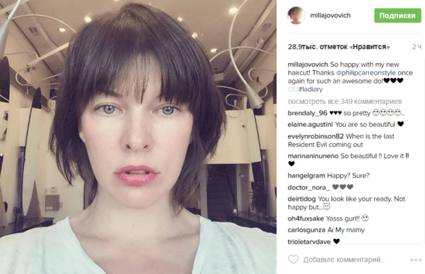 "Щаслива зі своєю новою зачіскою", — підписала кадр Мілла.
