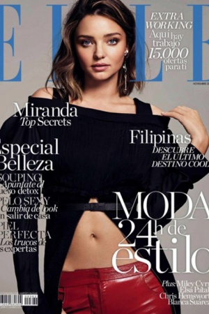 Але для редакції журналу Elle модель знайшла час і знялася для їх нового номера. Автором знімків став фотограф Ніно Муньос. Міранда постала перед камерою в незвичайного крою сукнях, теплих пальто і взуття на тракторній підошві. А на обкладинці глянцю продемонструвала свій плоский живіт.