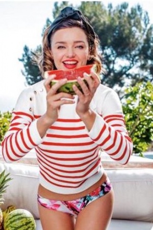 Днями, у своєму особистому мікроблозі Керр опублікувала промо-знімки нового фотопроекту журналу Stellar. Яскраві, сонячні кадри немов переносять нас знову в літо, тепло якого незабаром стане лише спогадом. Що ж, давайте отримаємо задоволення сонцем, фруктами і прекрасним настроєм з Мірандою Керр!