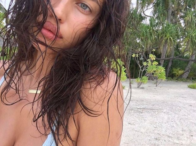 У своєму особистому мікроблозі молода мама опублікувала фото на тлі пальм, на якому позує в купальнику. Пляжний наряд і фігуру моделі цього разу не розглянути, проте, млосний погляд і мокре волосся роблять це фото досить спокусливим.