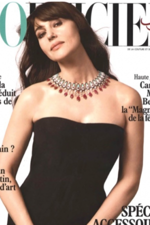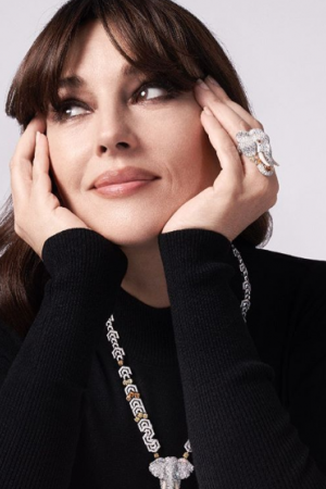 Під час зйомки знаменитість, яка починала свою кар'єру саме з моделінга, приміряла прикраси від одного з найвідоміших ювелірних брендів вишуканих коштовностей Cartier. На Моніці кільця і підвіски з коштовним діамантами у формі слона і намисто з дорогоцінними каменями.