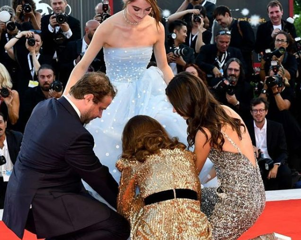 Під час Венеціанського фестивалю дівчина заплуталася в подолі власної сукні, через що їй довелося просити колег по фільму допомогти їй впоратися з ним.
