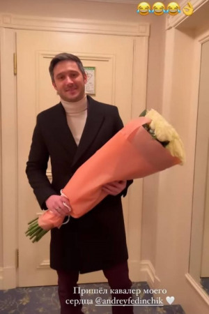 На знімках Денисенко позує у вечірній сукні смарагдового кольору з пишною спідницею. Серед святкового частування на столі - суші, устриці, полуниця та десерти. На одному з фото, чоловік Денисенко, актор Андрій Федінчик, зображений з букетом білих троянд.