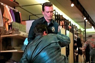 "Термінатор 2: Судний день". Термінатор прикриває Джона своїм тілом і отримує в спину повну обойму пістолетних патронів від Т-1000. Вся куртка в дірках. Але вже через кілька миттєвостей куртка цілісінька.