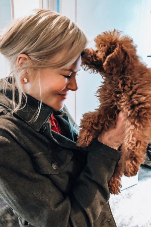 "Моє перше цуценя... насправді мій перший собака. Я чекала на це все моє життя!", - зізналася щаслива зірка під фото.