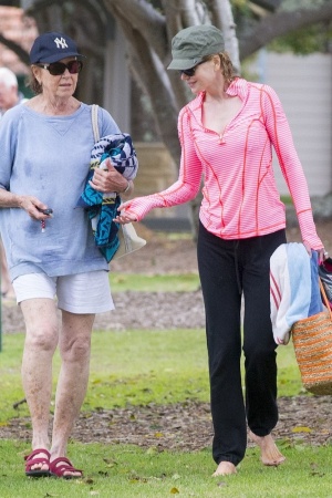 Зараз Ніколь Кідман насолоджується відпочинком у компанії самої близької людини - мами Дженелл Енн Ґленні. Папараці сфотографували дам вранці на пляжі Балморал-Біч у Сіднеї. 48-річна актриса продемонструвала підтягнуту фігуру і природну красу без макіяжу.
