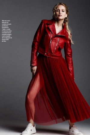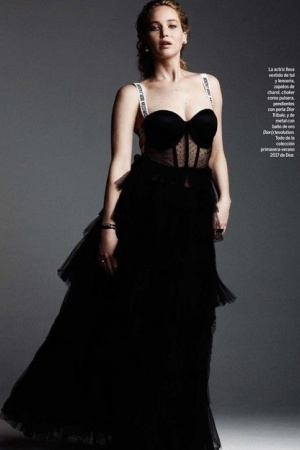 В фотосеті Дженніфер демонструє ансамблі тільки від Dior – Лоуренс вже не перший рік співпрацює з французьким будинком і не тільки знімається в рекламних кампаніях, але і регулярно "вигулює" одяг з нових колекцій Dior на світських заходах і кінопрем'єрах.