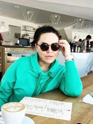 Оксана Байрак сфотографувалася за столиком в кафе, прийшовши туди випити чашку кави. Зірка ТБ не стала знімати сонцезащитных окулярів, ймовірно, приховуючи не нафарбовані очі.