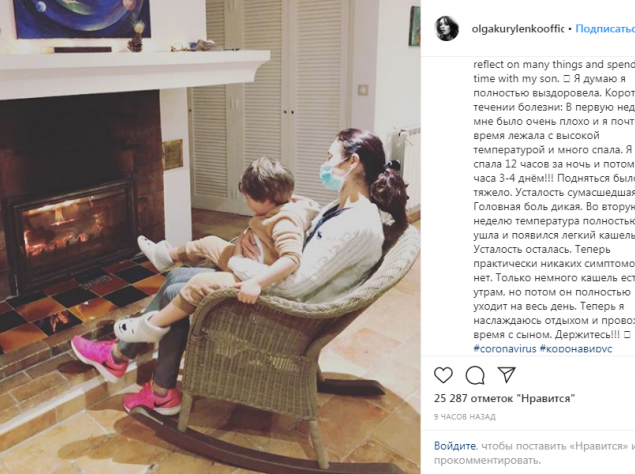 "Я думаю, що повністю видужала. Коротко про перебіг хвороби : в перший тиждень мені було дуже погано і я майже увесь час лежала з високою температурою і багато спала. Я спала 12 годин за ніч і потім ще години 3-4 вдень!!! Піднятися було важко. Втома божевільна. Головний біль дикий", - написала Куриленко.
