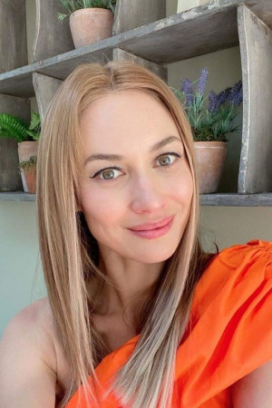 На нових фото Ольга постала зі світлим випрямленим волоссям. Свій новий образ вона доповнила яскраво-помаранчевою сукнею і ефектним макіяжем.