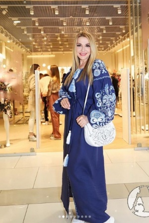 Ольга Сумська днями побувала на відкритті модного бутику. Для виходу у світ актриса вибрала синіше сукню-вишиванку в підлогу, зібравши масу компліментів.