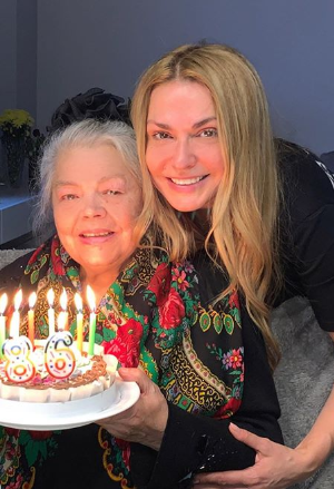 "Зі святом Покрови, друзі! Наша берегиня Ганна Іванівна, іменинниця, передає всім привіт! Святкуємо і насолоджуємося життєвими історіями у виконанні заслуженої артистки! Многая літа, мамочеко, рідненька!" – зворушливо написала Ольга Сумська під фото, на якому зображена винуватиця торжества зі святковим тортом у руках.
