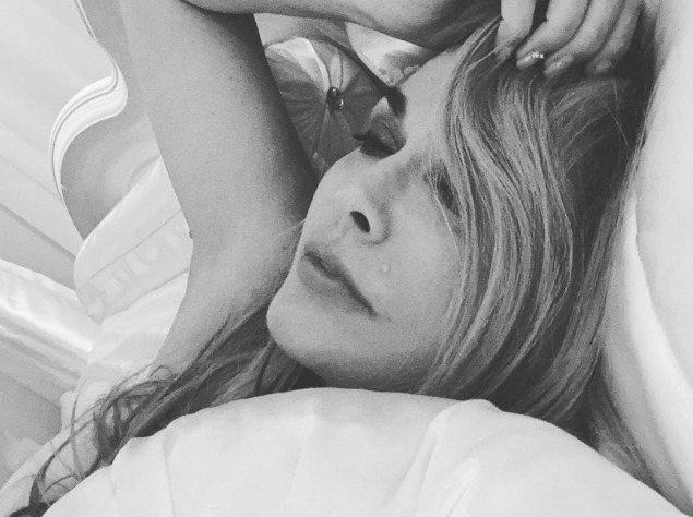 На сторінці в Instagram акторка запостила серію знімків, на яких зображена, лежачи у ліжку. Сумська з млосним виглядом прикрилася ковдрою і так позувала на камеру. Звабливості фото додає чорно-білий фільтр.