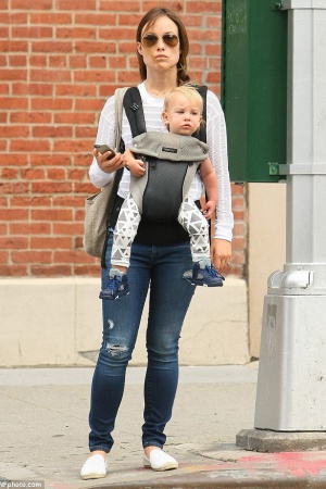 Олівія Уайлд зі своєю однорічною дитиною по імені Отіс прогулюється по району Нью-Йорка, не обтяжуючи себе величезними візками, а використовуючи простий, але комфортний рюкзак-кенгуру, як повідомляє Dailymail.