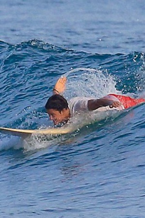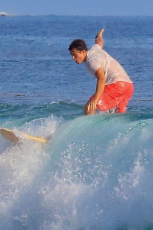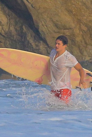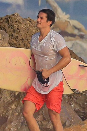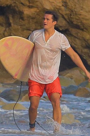 Орландо Блум активно стежить за своєю фігурою і регулярно займається фізичною активностю. То бігає, ходить в спортзал. Днями папараццы засікли 38-річного актора під час серфінгу в Майямі.