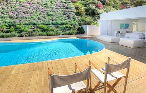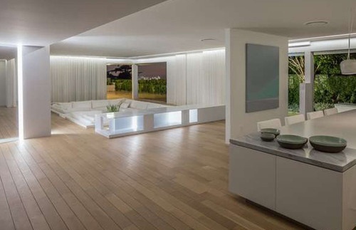 Одноповерховий особняк площею 370 квадратних метрів передбачає 4 спальні, 4 ванні кімнати, простору вітальню, їдальню на десять гостей, басейн, домашній кінотеатр та інші "бонуси", практично обов'язкові для будинків знаменитостей.