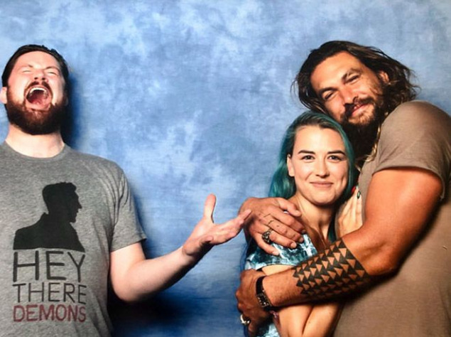 Численні прихильниці часто просять актора про спільну фотографію, що іноді бентежить їх коханих. Проте Момоа знайшов вихід з положення: на фото з фанатками він створює міні-сюжети, прикидаючись, ніби відводить дівчат від їх других половинок і дуже потішно "троллить" парочки.