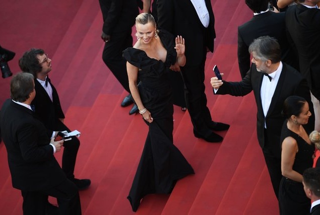 Зірка вибрала для своєї появи на червоній доріжці чорне плаття з воланами і глибоким декольте від Vivienne Westwood.