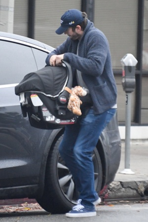 Буквально кілька днів тому зіркову родину у повному складі «застукали» на вході одного з ресторанів в Студіо Сіті (Лос-Анджелес, Каліфорнія). В руках Катчер ніс автокрісло, де знаходився маленький Димитрій.