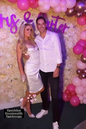 Святкування почалось із польоту приватним літаком до Невади. Наречений та наречена попрямували до готелю Resorts World Las Vegas, який належить родині Гілтон. На його фасаді був розміщений величезний банер з фотографією Періс та привітанням.