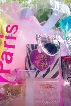Перша частина туси відбулась біля басейну. Спочатку Періс одягнула коротку сукню в улюбленому рожевому кольорі, сонцезахисні окуляри з написом "Наречена" і діадему з фатою. Згодом вона переодягнулася в білий купальник з написом "Дружина на все життя". Продовжили вечірку і гості, і наречені в одному з нічних клубів Лас-Вегаса.