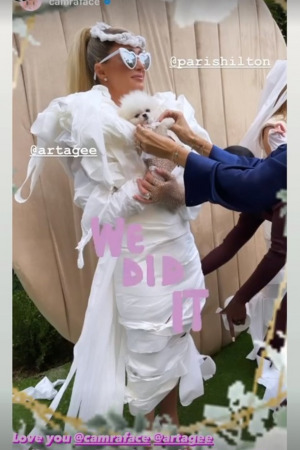 Світська левиця і бізнес-вумен Періс Хілтон влаштувала передвесільний бранч на задньому дворі свого особняка в Лос-Анджелесі, під час якого приміряла весільну сукню з туалетного паперу. Фотографіями вечірки вона поділилася в Instagram Stories.