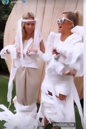 На вечірці гості та господиня веселилися від душі: для Хілтон та її невістки Теси створили весільні вбрання з підручних матеріалів.