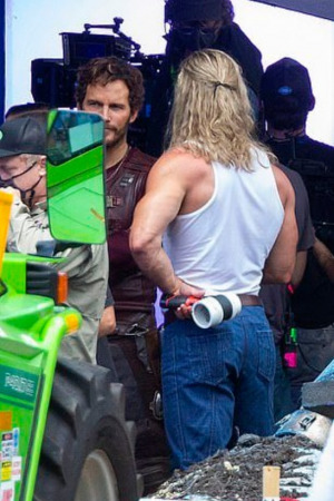 Йдеться про "Варту Галактики", які заявилися на майданчик фільму. На фотографіях можна побачити Кріса Хемсворта і Кріса Пратта, що грає Зоряного лорда. Також на зйомки прибутку Небула у виконанні Карен Гиллан і Краглин, роль якого виконує Шон Ганн. Усі одягнені в костюми своїх героїв.