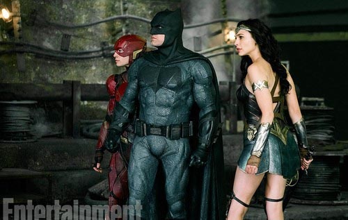 Видання Entertainment Weekly показало новий кадр з "Ліги справедливості", прийдешнього супергероїчного блокбастера DC Comics/Warner Bros. На новому фото - Галь Гадот, Езра Міллер і Бен Аффлек в дуже специфічному костюмі Бетмена.
