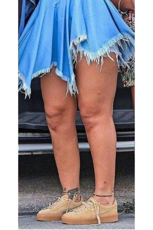 Американська R & B співачка і актриса барбадоського походження Ріанна продовжує шокувати шанувальників своїм зовнішнім виглядом. На цей раз папараці сфотографували артистку в коротким плаття з відкритими оголеними ногами.