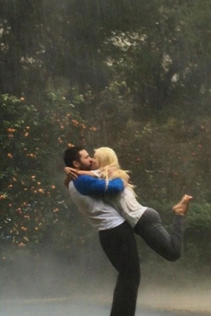 Метт і Христина повторили знаменитий кадр з фільму "Щоденник пам'яті" з Райаном Гослінгом і Рейчел МакАдамс. Закохані цілуються, стоячи під дощем і не помічаючи нічого навколо.