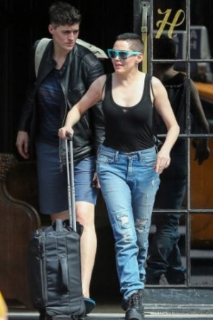 Проте цього разу знаменитість відмовилася від жіночних суконь і високих підборів, віддавши перевагу мужнішому аутфіту. Брюнетка позувала в чорній облягаючій майці, джинсах-бойфітах, а також темних шкіряних черевиках з масивною підошвою. Крім того актриса використала модні сонцезахисні окуляри бірюзового відтінку. Варто відмітити, що Роуз продовжила експериментувати над своїм виглядом. Макгоун кардинально укоротила стрижку, виголивши скроню.
