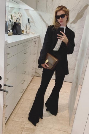 Так, у своєму Instagram Хантінгтон-Вайтлі показала відразу сім фото, на яких продемонструвала образи, які носила в течії одного тижня. Базовий гардероб знаменитості складають біла сорочка, коричнева сумка, прості джинси, елегантне сукня-футляр, спідниця-олівець і об'ємний жакет. У таких look можна відправитися і на ділову зустріч, і на прогулянку, і на романтичне побачення.