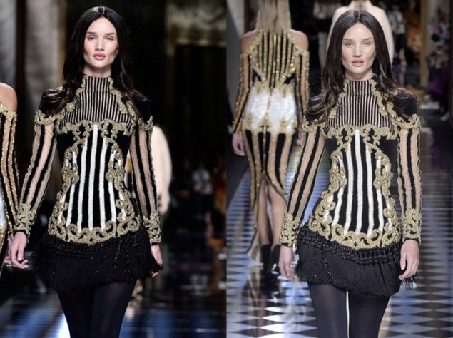 Вона відома всім як красива, довгонога білявка. Але днями, на показі Balmain осінь/зима 2016 під час Тижня моди в Парижі Роузі Хантінгтон-Уайтлі постала жагучою брюнеткою.