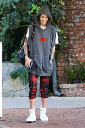 Рубі Роуз, що перенесла серйозну операцію на хребті, уперше сфотографували без тростини. 31-річна актриса прямувала в голлівудське кафе Alfred Coffee, розташоване на Мелроуз-авеню.